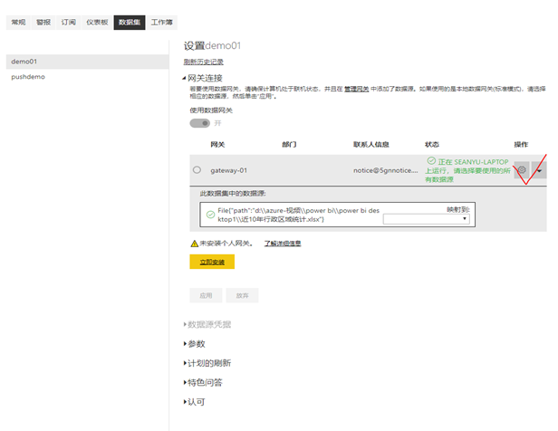 如果需要Power BI 服务的报表进行数据刷新,需要对Power BI 服务中对应的数据集进行刷新,需要用到“本地数据网关程序”。