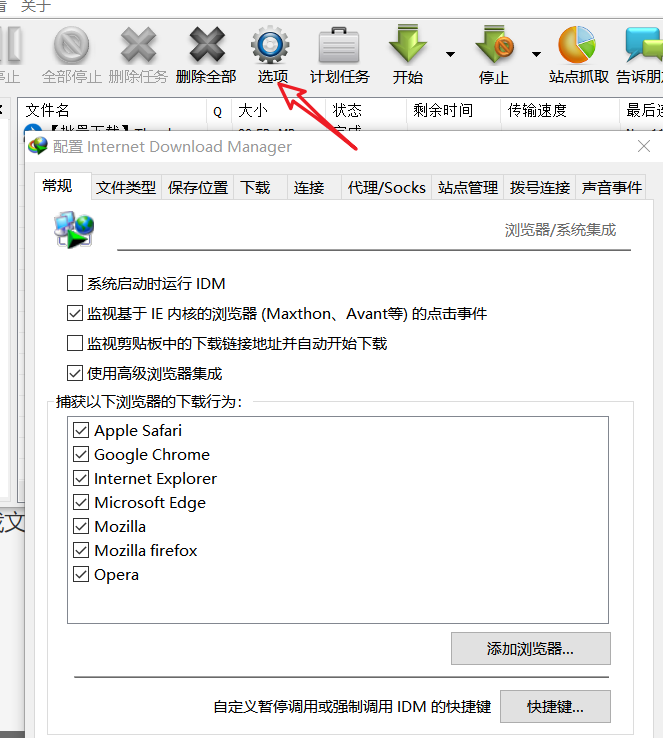 安装后根据介绍安装浏览器插件,插件安装成功后 在浏览器下载文件时会调用IDM下载