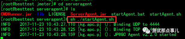 默认端口没有被占用,所以不必修改agent的端口号,再sh ./startagent.sh启动agent服务,从图中可以看到agent服务绑定了4444端口号。