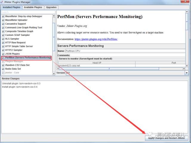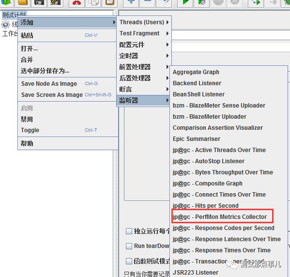 点击后安装完成会自动重启jmeter。再次进入jmeter添加监视器中就可以看到已经有perfmon了