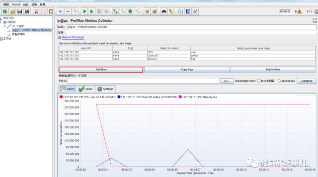 然后回到jmeter,先添加一个行监控项,点击addrow,默认添加的是localhost,cpu。