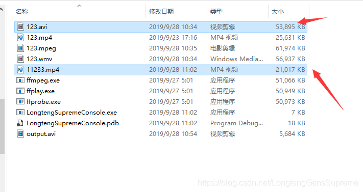 2、首先debug生成Debug,然后把下载的ffmpeg.exe(可以到https://ffmpeg.org/download.html下载,)拷贝到Debug下,直接运行程序就可以了