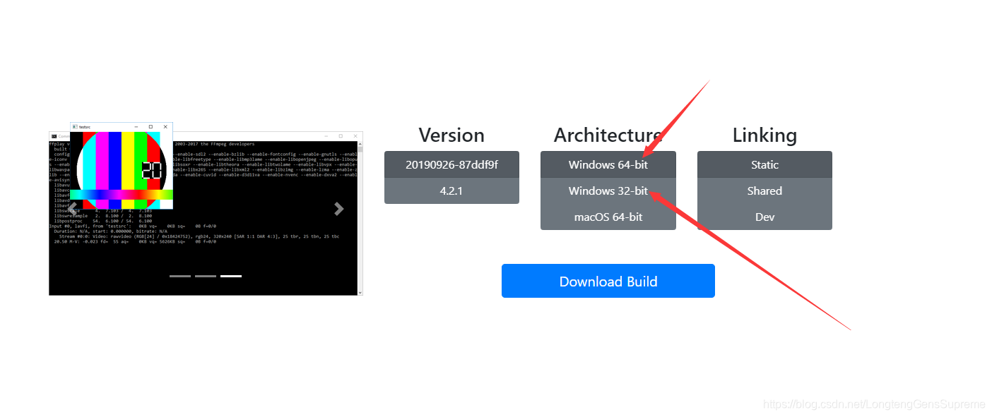 第二种:https://ffmpeg.zeranoe.com/builds/,直接下载编译版本
