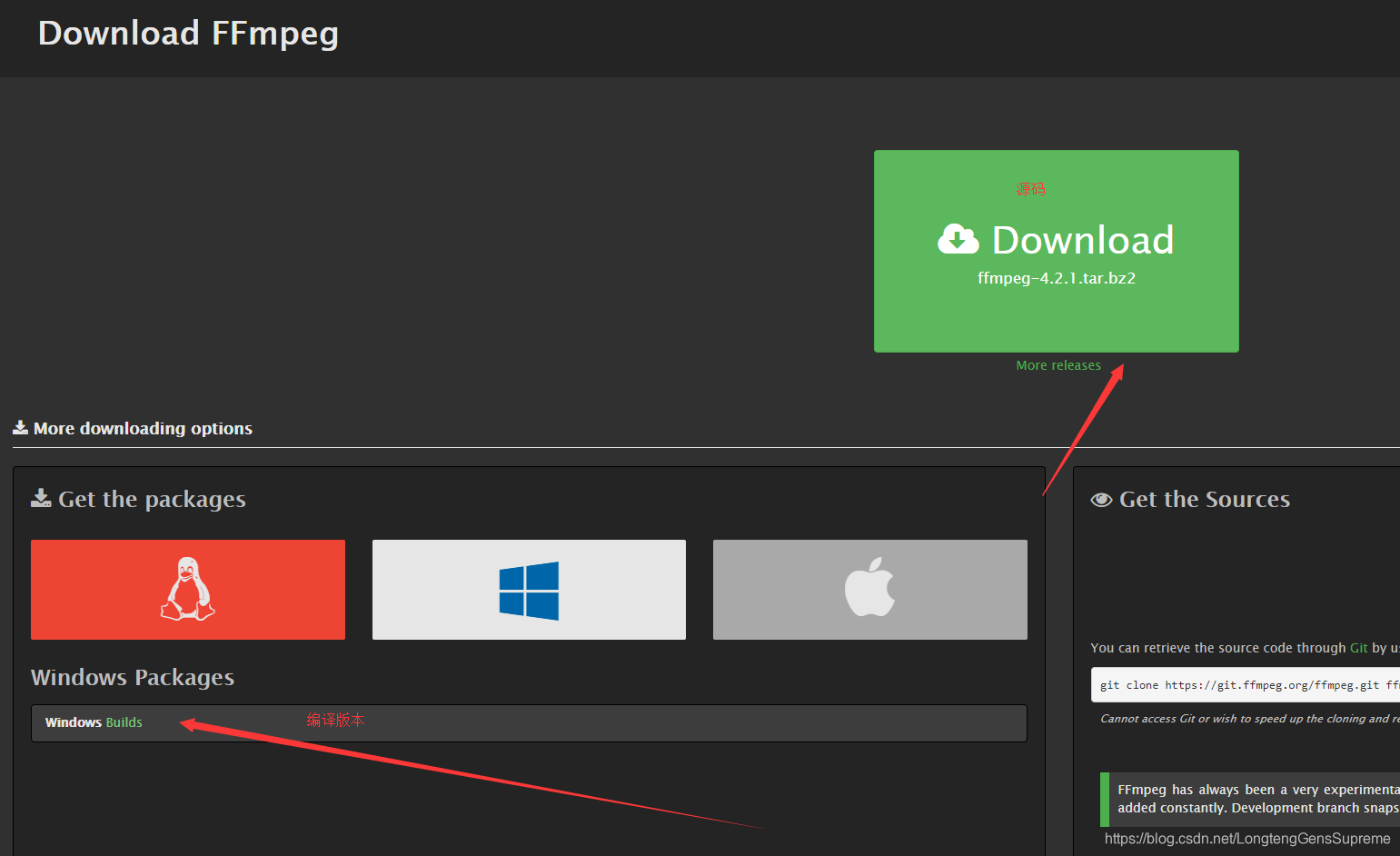 第一种: https://ffmpeg.org/download.html,可以看到源码和build版本