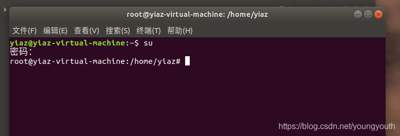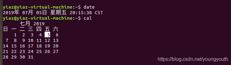 其中 yiaz@yiaz-virtual-machine:~$ 一行文字是 shell 提示符,它的出现表示 shell 准备好了,可以开始接收输入了。