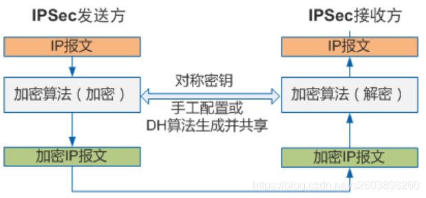 用于加密和解密的对称密钥可以手工配置,也可以通过IKE协议自动协商生成。