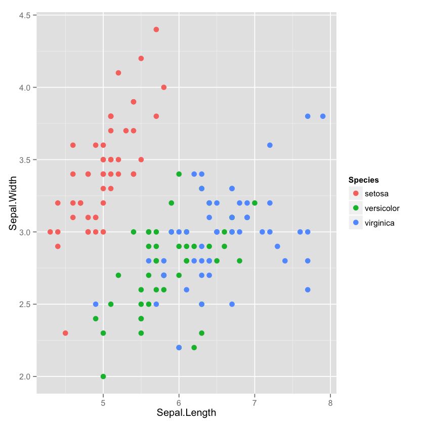 ⑤ 绘图 Sepal.Width vs. Sepal.Length: