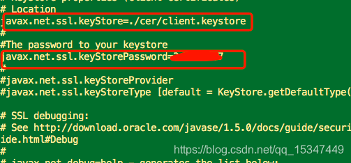 3.进入jmeter的bin文件夹,修改system.properties文件,设置javax.net.ssl.keyStore值为证书存放位置,最后把证书放在jmeter的bin文件夹下,我是在bin文件夹下创建了一个cer存放证书,图中使用了相对路径。设置javax.net.ssl.keyStorePassword的值为刚设置的证书密码,注意默认javax.net.ssl.keyStore和javax.net.ssl.keyStorePassword是注释掉的,需要放开,修改完毕保存后重启jmeter,再次请求时就不需要再设置证书啦
