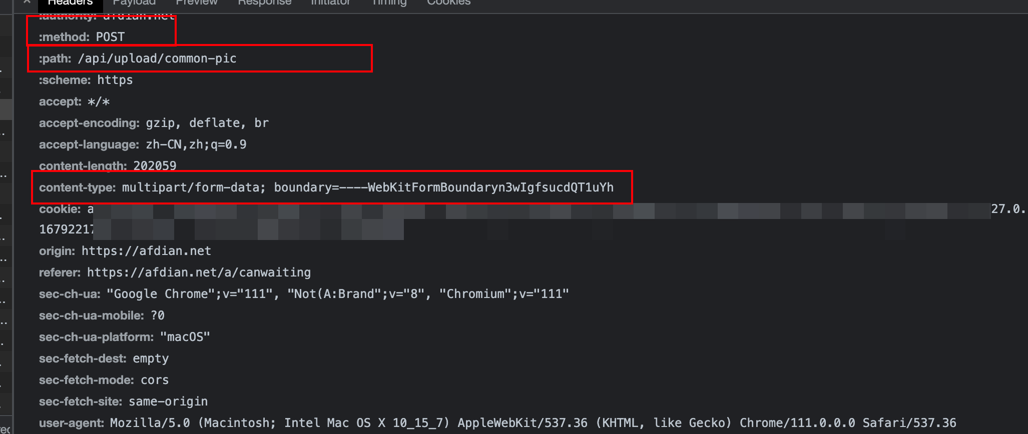 上网搜了一下,这里大概的意思就是爱发电的这个接口需要的content-type是比较少见的类型:multipart/form-data