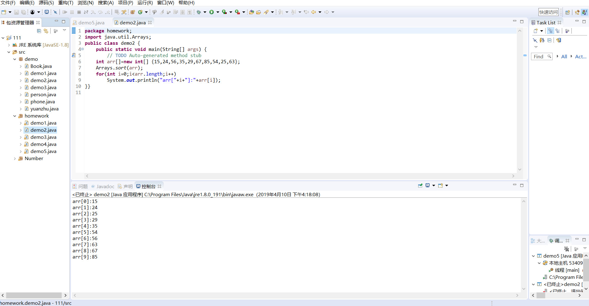 对无序的10个数字使用Arrays类的sort方法进行排序。要求: