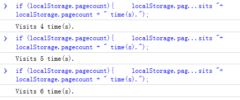 console.log("Visits "+ localStorage.pagecount + " time(s).");