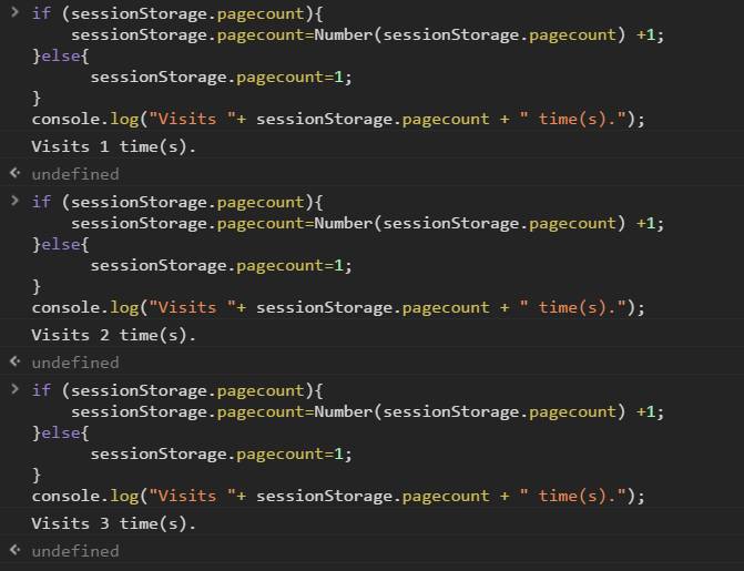 console.log("Visits "+ sessionStorage.pagecount + " time(s).");
