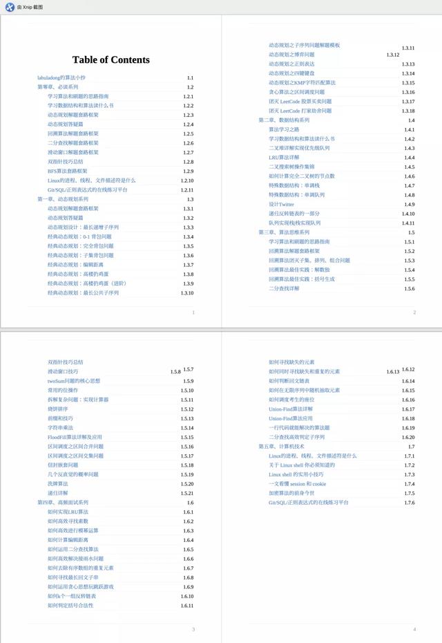 讲真,刷算法要是没有套路章法,连笔试都过不去,而这本电子书已经规划好了刷题路径,目录如下: