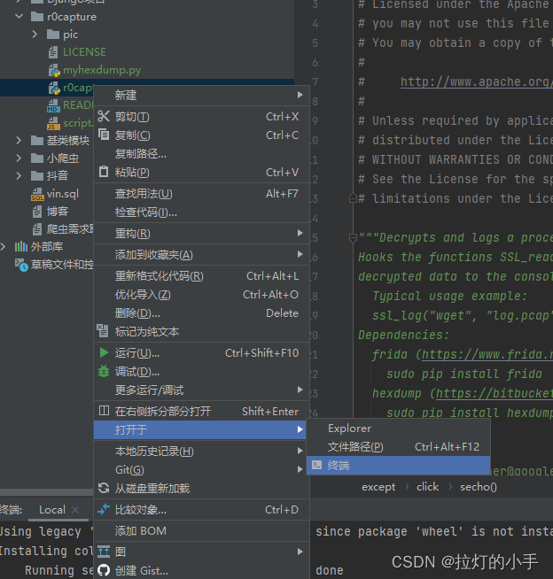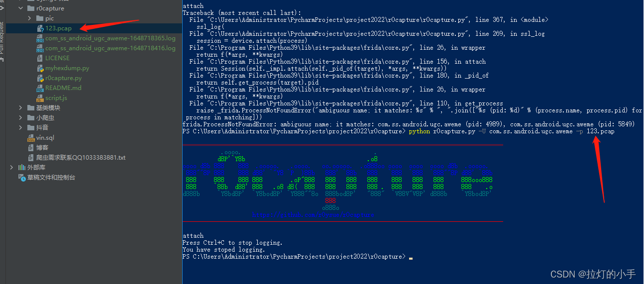 r0captue.py的上一级开启一个命令行或直接cd 到要执行的目录,如下图所示: