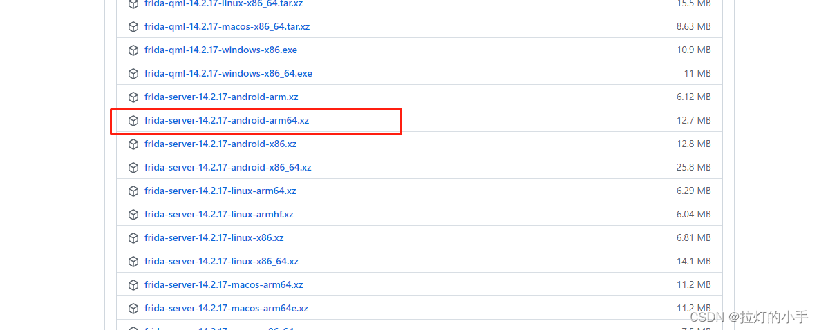 release标签里,找到对应版本的frida-server,注意要匹配系统和架构,比如arm和arm64就不能搞错查看手机CPU 架构类型