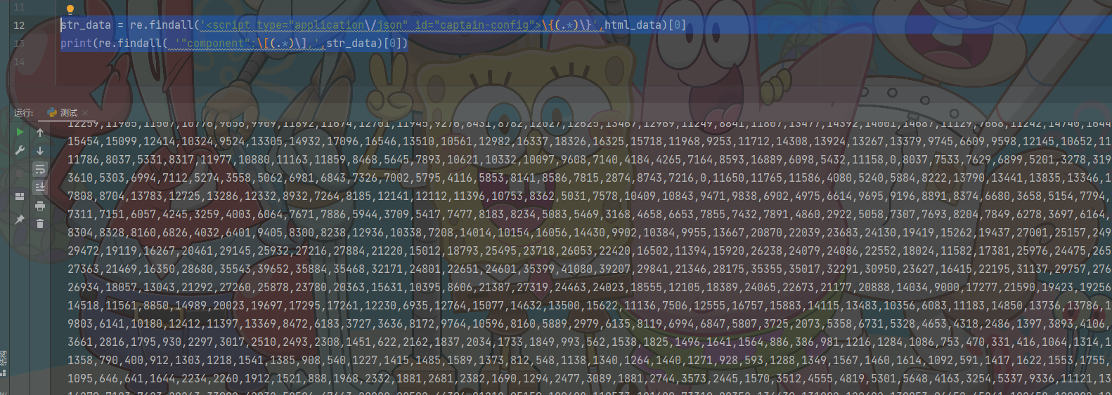json_str = re.findall('"component":\[(.*)\],', html_data)[0] # 字符串