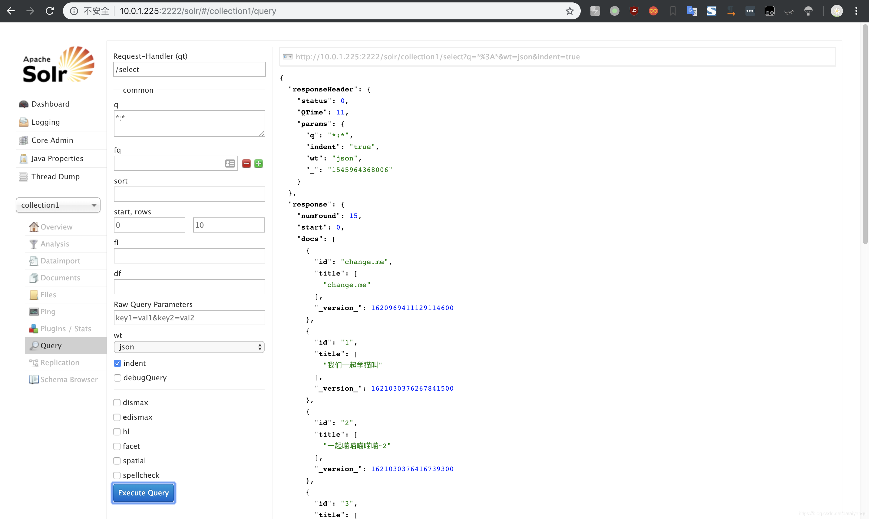 System.out.println("id:" + doclist.get(i).get("id") + "---title:" + doclist.get(i).get("title"));
