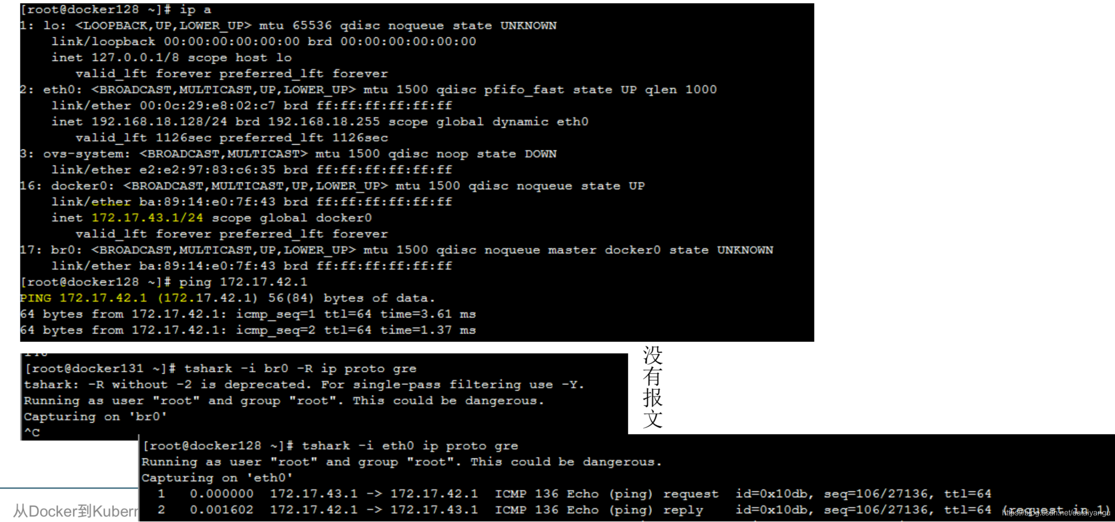 说明了,gre是在物理网络上进行传播的,并不是在brg里面,只是在物理网络里面进行了二次封装,所以走的还是eth0.