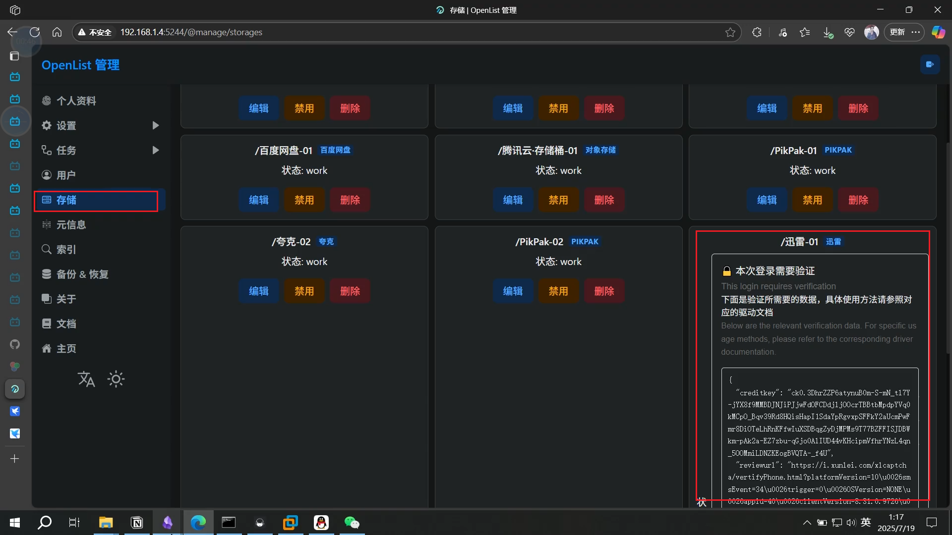 回到存储界面,会发现迅雷对应的部分会出现需要的验证信息