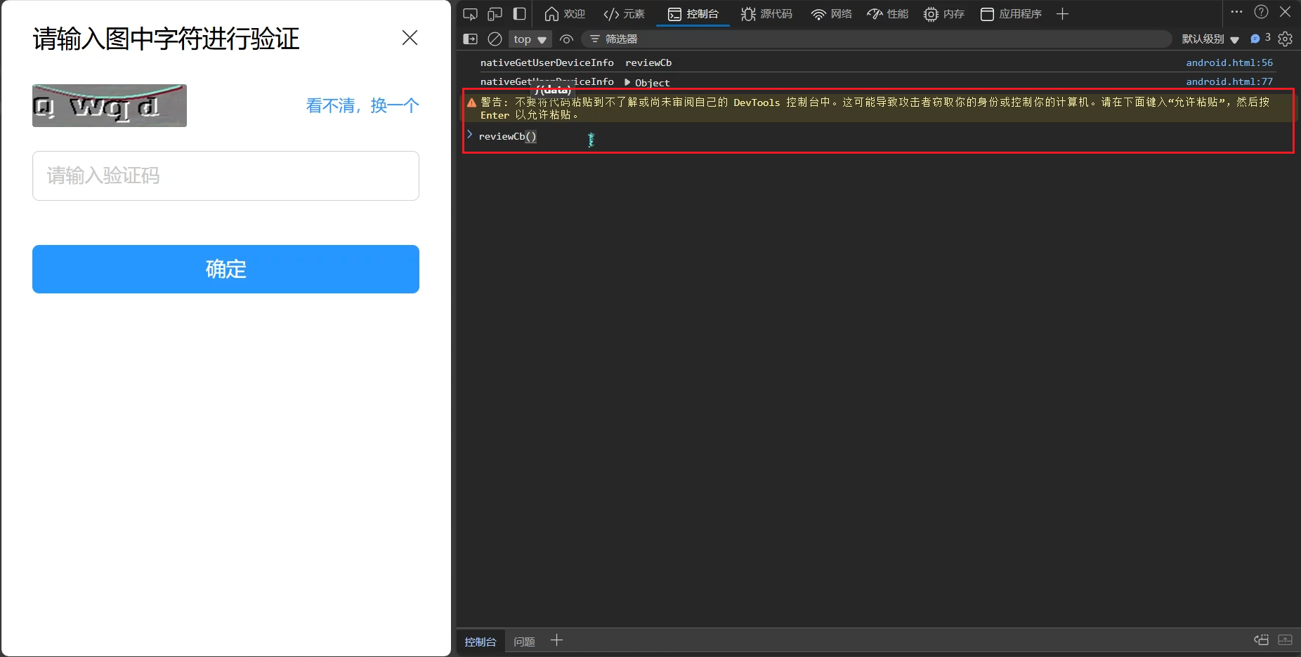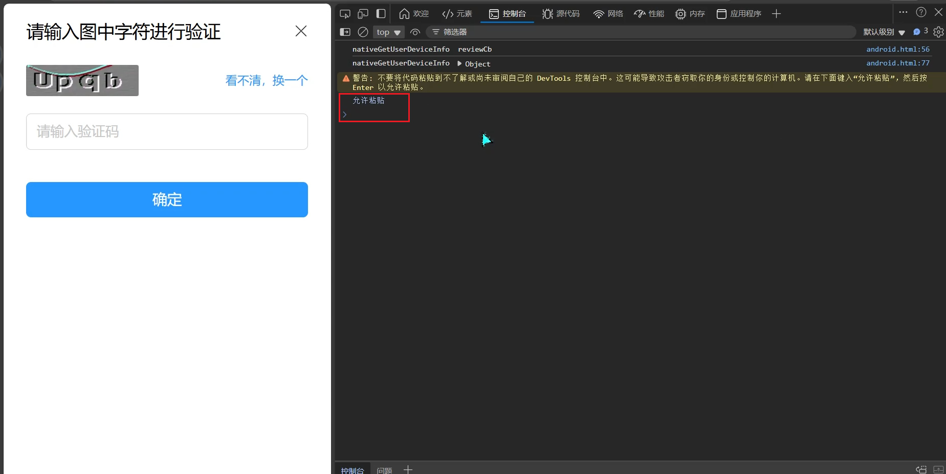 此时就需要在控制台输入“允许粘贴”,并回车确认,像下面这样,打开粘贴权限