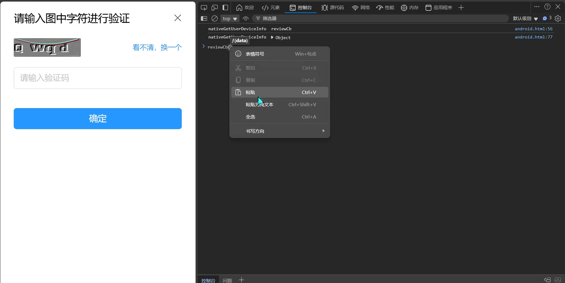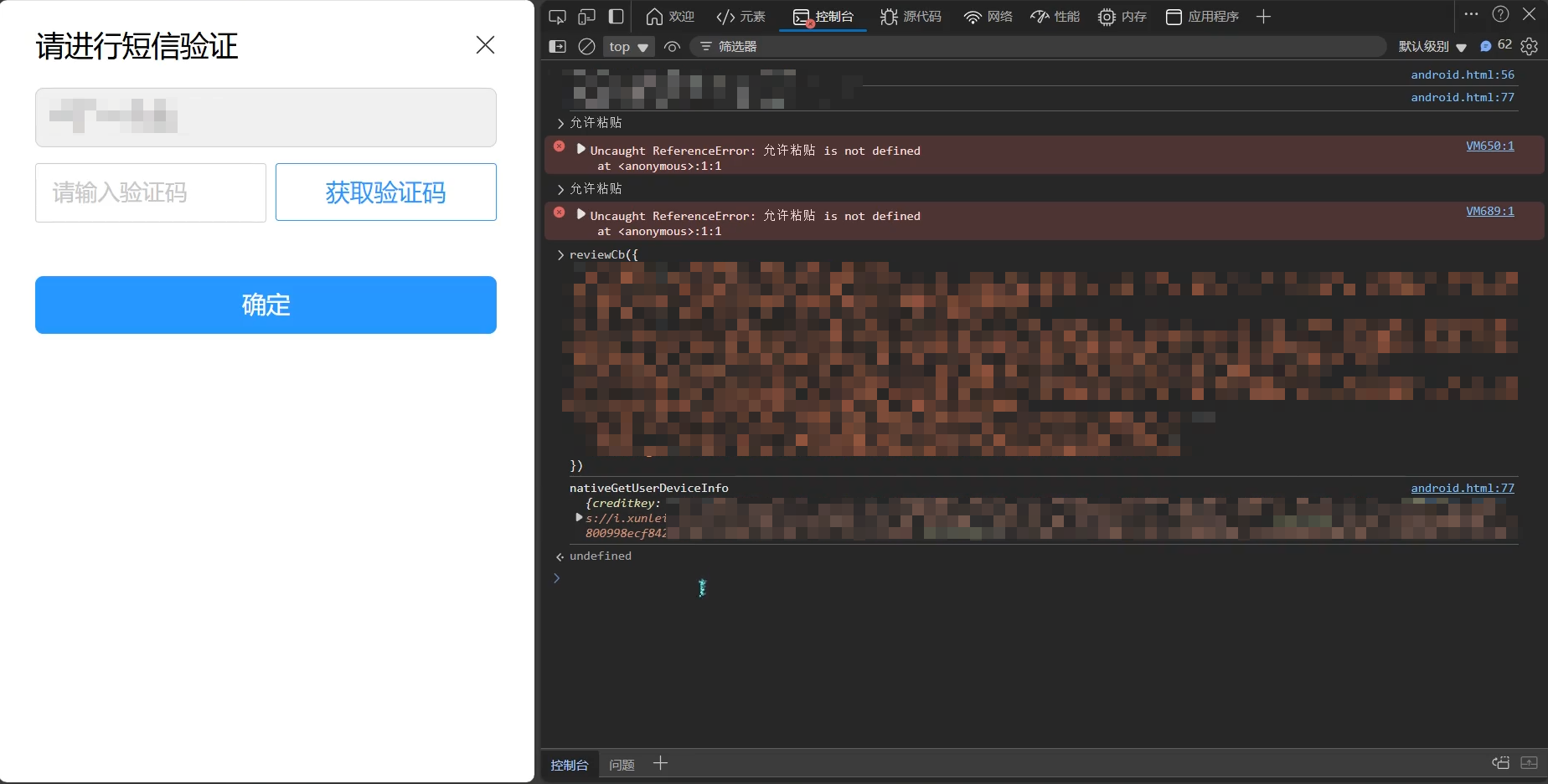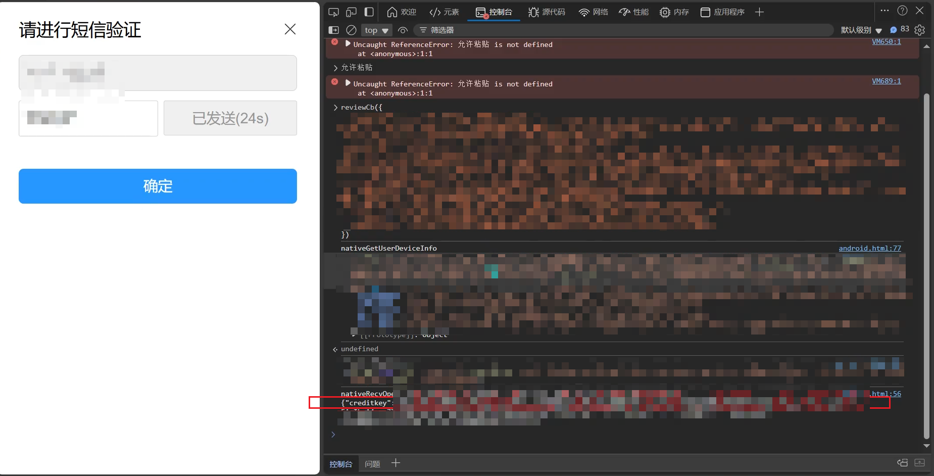 点击“确定”之后,控制台会更新信息,更新后信息里的creditkey就是要获取的验证码信息。