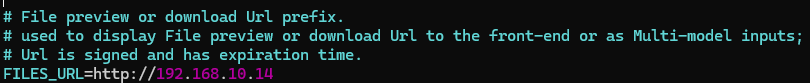 通过一番排查,我发现dify云服务版本不会出现这个错误。进一步检查浏览器控制台后,看到上传文件成功后,dify接口返回的URL参数带有http://ip:端口前缀,而我本地部署的dify则没有这个前缀。通过跟踪dify的源代码,看到dify是通过读取docker/.env.example文件中的dify_config.FILES_URL配置来拼接这个前缀,全局搜索FILES_URL,看到在docker/.env文件中这个配置项默认是空,于是将其修改为我dify的访问地址:http://192.168.10.14(如果你的dify使用的不是80端口,记得在ip后面加上':端口号')。