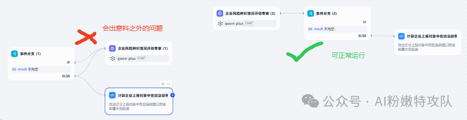 如果需要在条件分支的if和else中都执行某个节点,应该将该节点放到条件分支之前,否则有可能会出现条件分支节点不往后执行的问题。