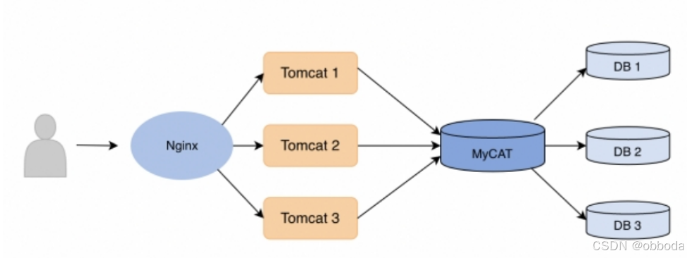 1.1 什么是MyCAT?MyCAT是目前最流行的分布式数据库中间插件,是一个开源的分布式数据库系统,是一个实现了MySQL协议的服务器。前端用户可以把它看作一个数据库代理,用MySQL客户端工具和命令行访问,其后端可以用MySQL原生协议与多个MySQL服务器通信,也可以用JDBC协议与大多数主流数据库服务器通信,其核心功能是分表分库,即将一个大表水平分割为N个小表,存储在后端MySQL服务器里或者其他数据库里。