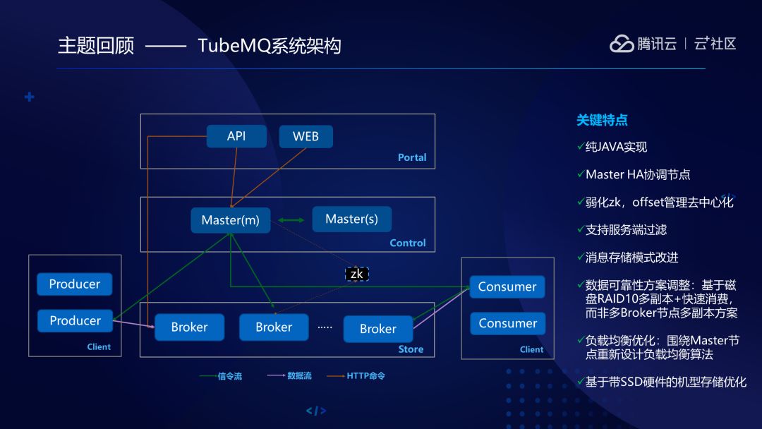 那么,腾讯自研的TubeMQ又有什么样的特点呢?TubeMQ属于万亿级分布式消息中间件,专注于海量数据下的数据传输和存储,在性能、可靠性,和成本方面具有独特的优势。