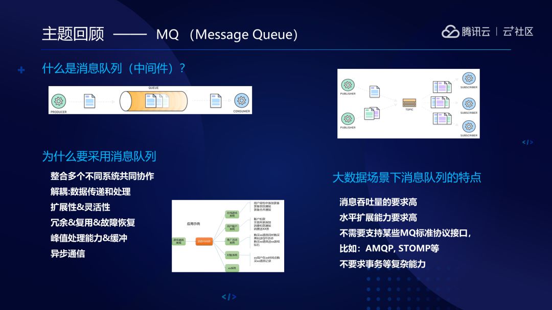 那作为大数据场景下的MQ又有什么特点呢?从我个人的理解来说,就是高吞吐低延时,系统尽可能地稳定,成本尽可能地低,协议也不需要特别地复杂,特别是水平扩展能力要尽可能的高。