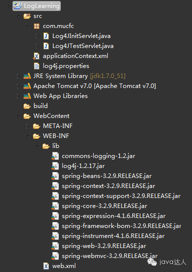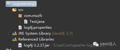 1.新建一个JAva工程,导入包log4j-1.2.17.jar,整个工程最终目录如下