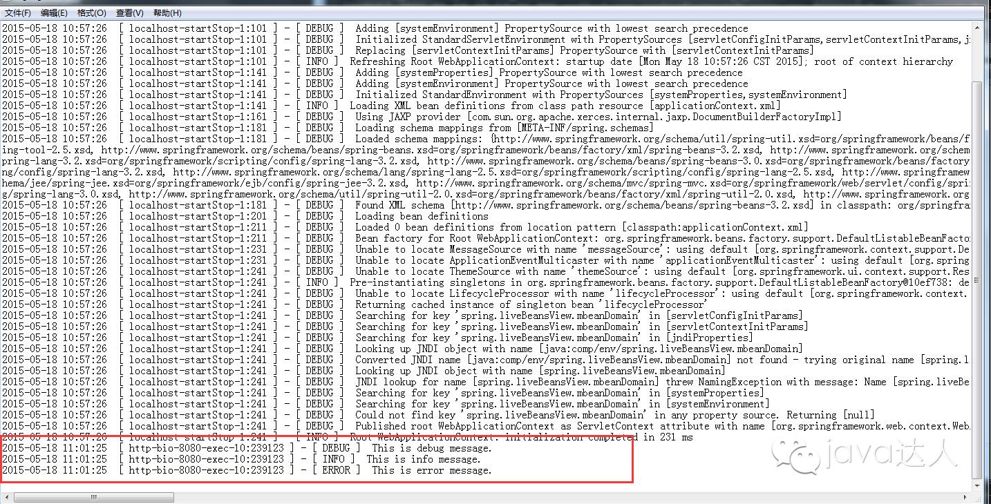// System.out.println("This is println message."); // 记录debug级别的信息