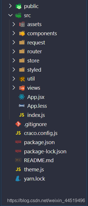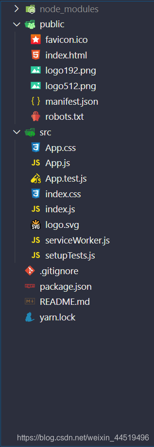 使用脚手架搭建的初始文件夹是这样的。