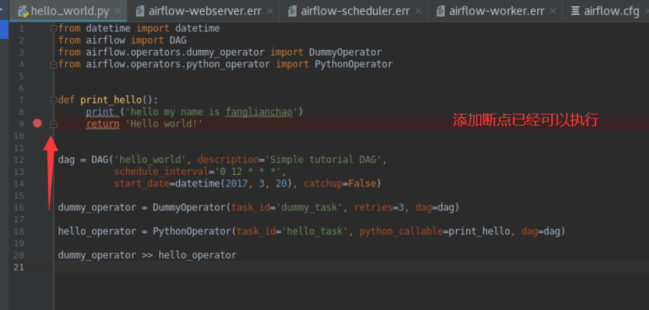 这里我想分享 如何用 pycharm 对 airflow 进行调试