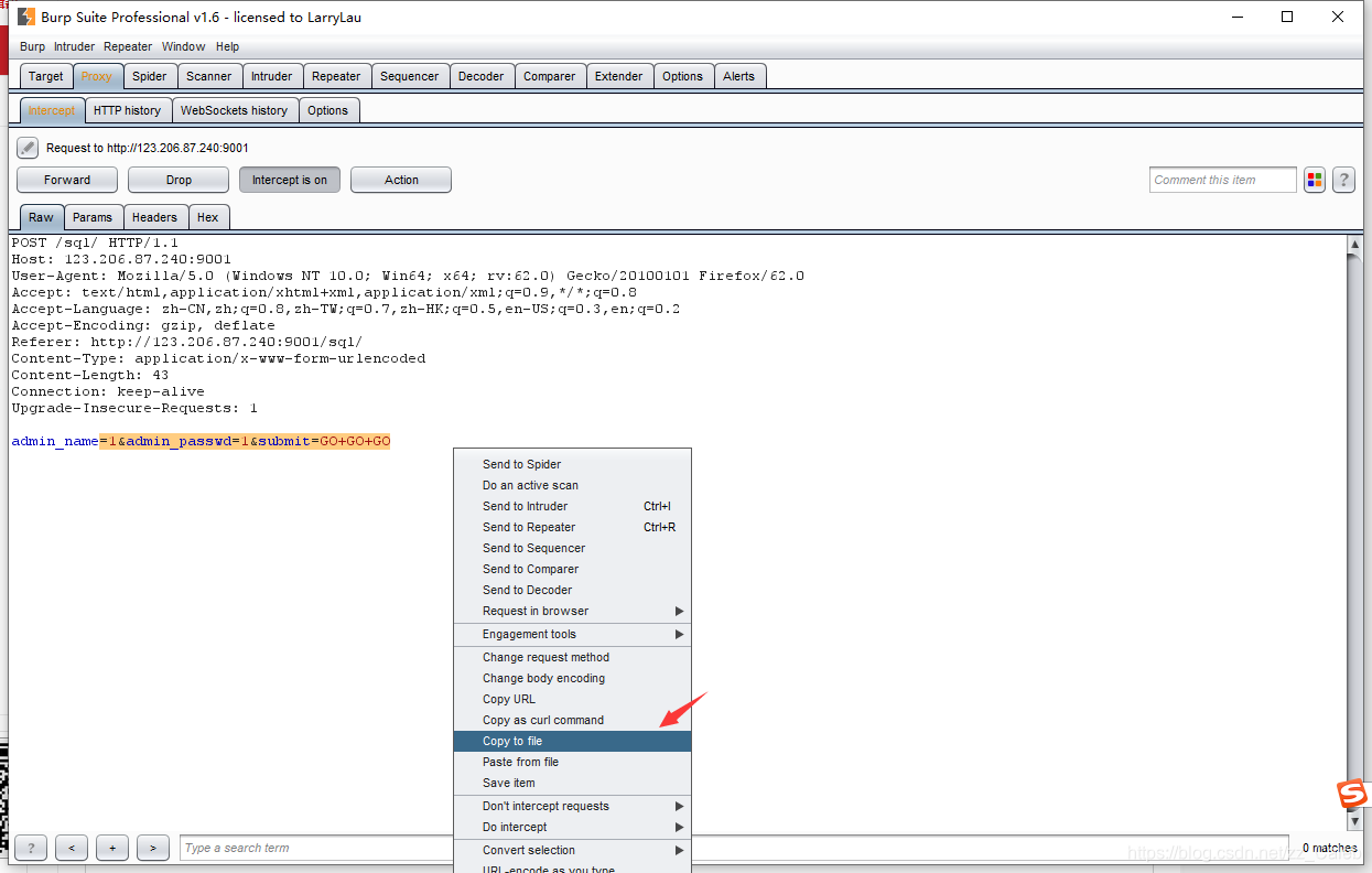 如图将其保存到txt文件中,然后用SQLmap来注入