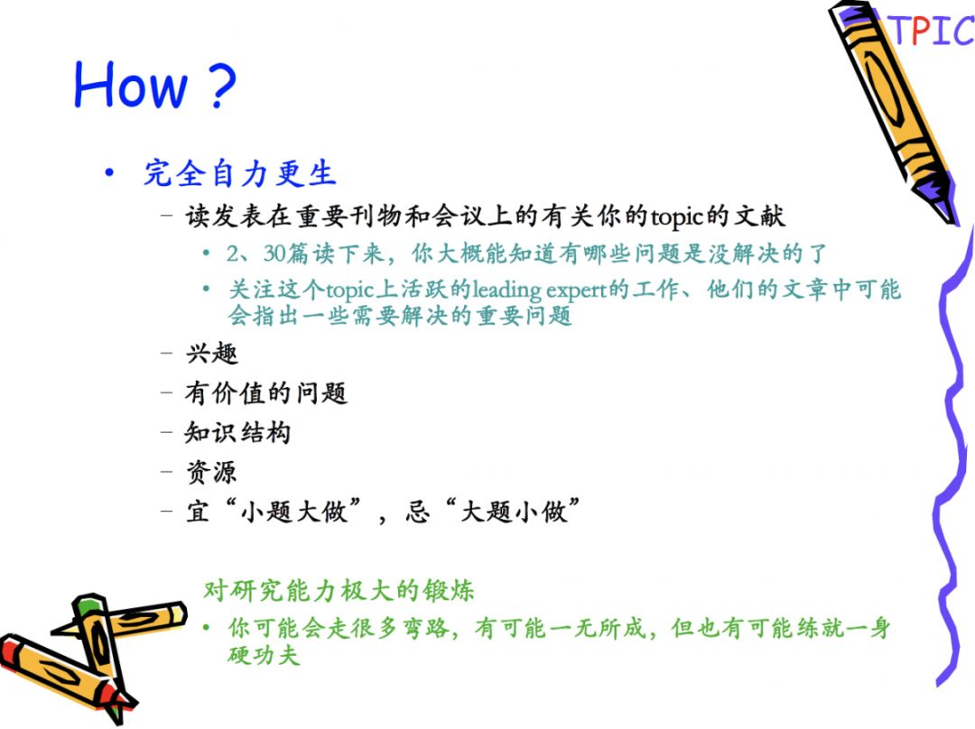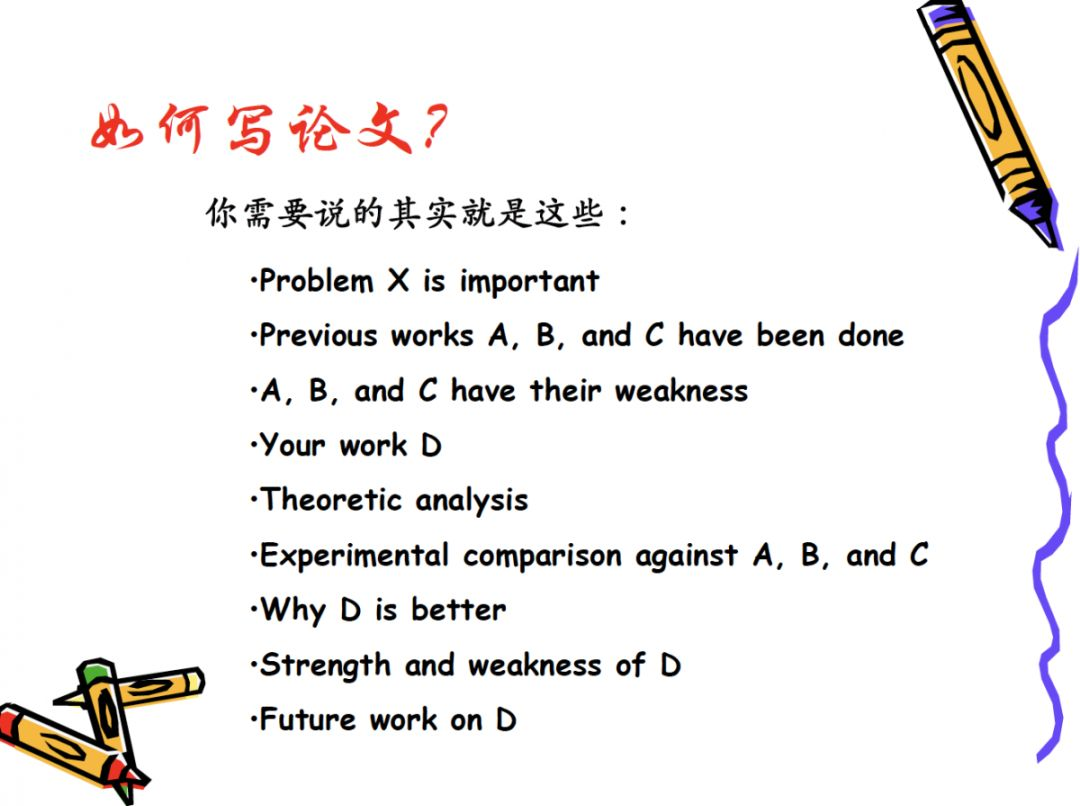 本文整理了著名人工智能学者周志华教授《做研究与写论文》的PPT(时间比较早,但方法永远不会过时)。其详细介绍了关于为什么要做研究?如何做研究,选择研究方向、选择研究课题(Topic),学习领域知识、选期刊投稿、稿件处理过程、写高水平论文的方法与技巧等方面的知识,是一份非常优秀的做研究和写论文指南,值得每个人细读(推荐指数:★★★★)