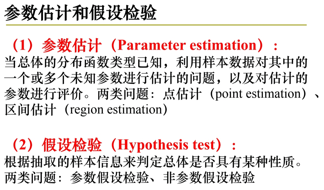 Estimation: 根据样本数据确定总体的特征;