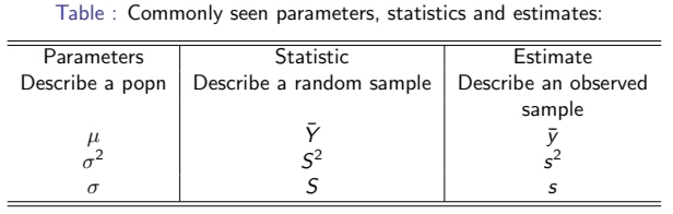 - Population variance: σ2I Sample variance: S2 =1n−1Pni=1(Yi − ¯ Y)2