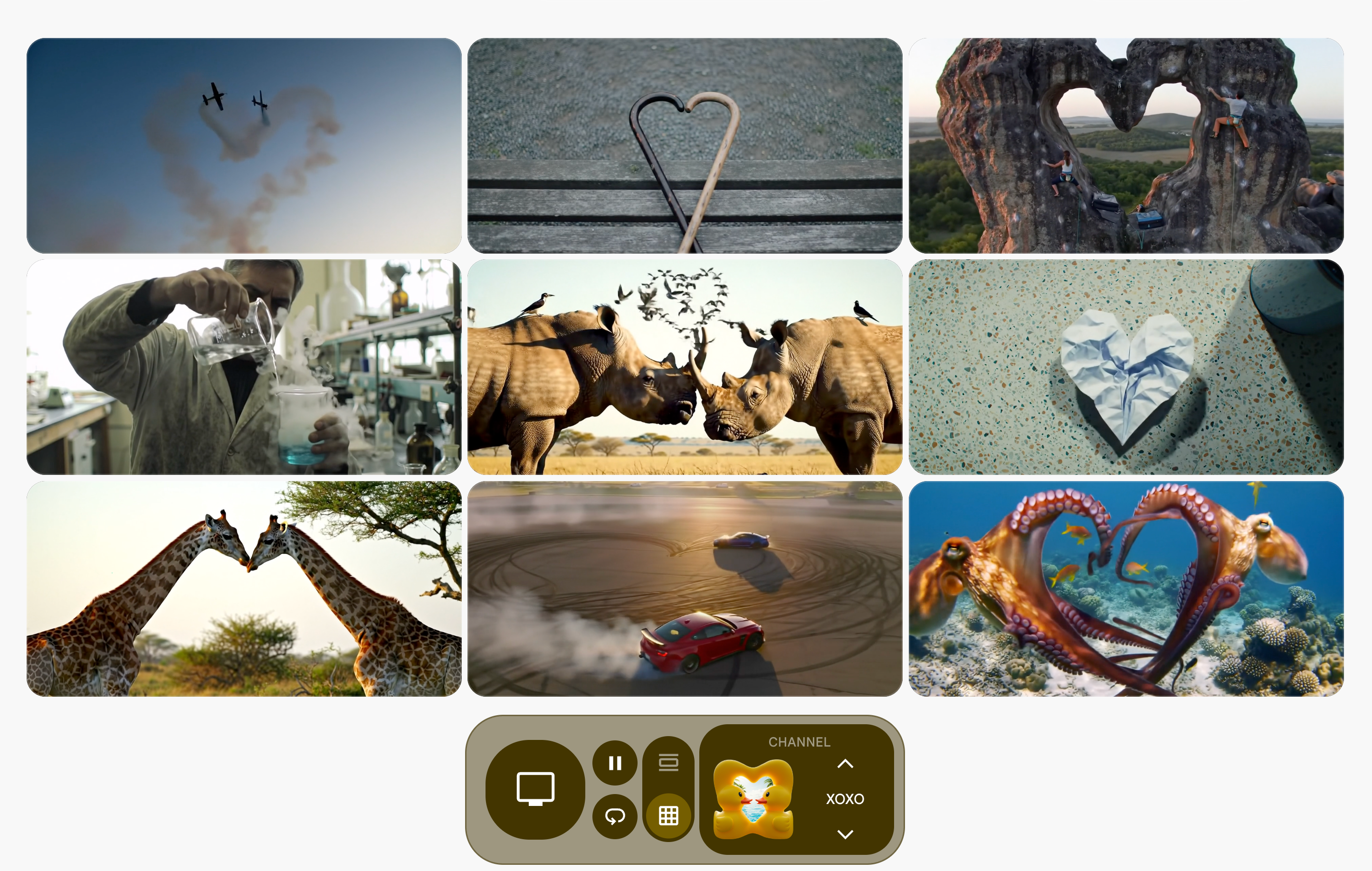 切换到网格视图,可以查看风格相近的多个视频,比如下面这个 “画爱心” 的提示词,生成了这么多有趣的创意。