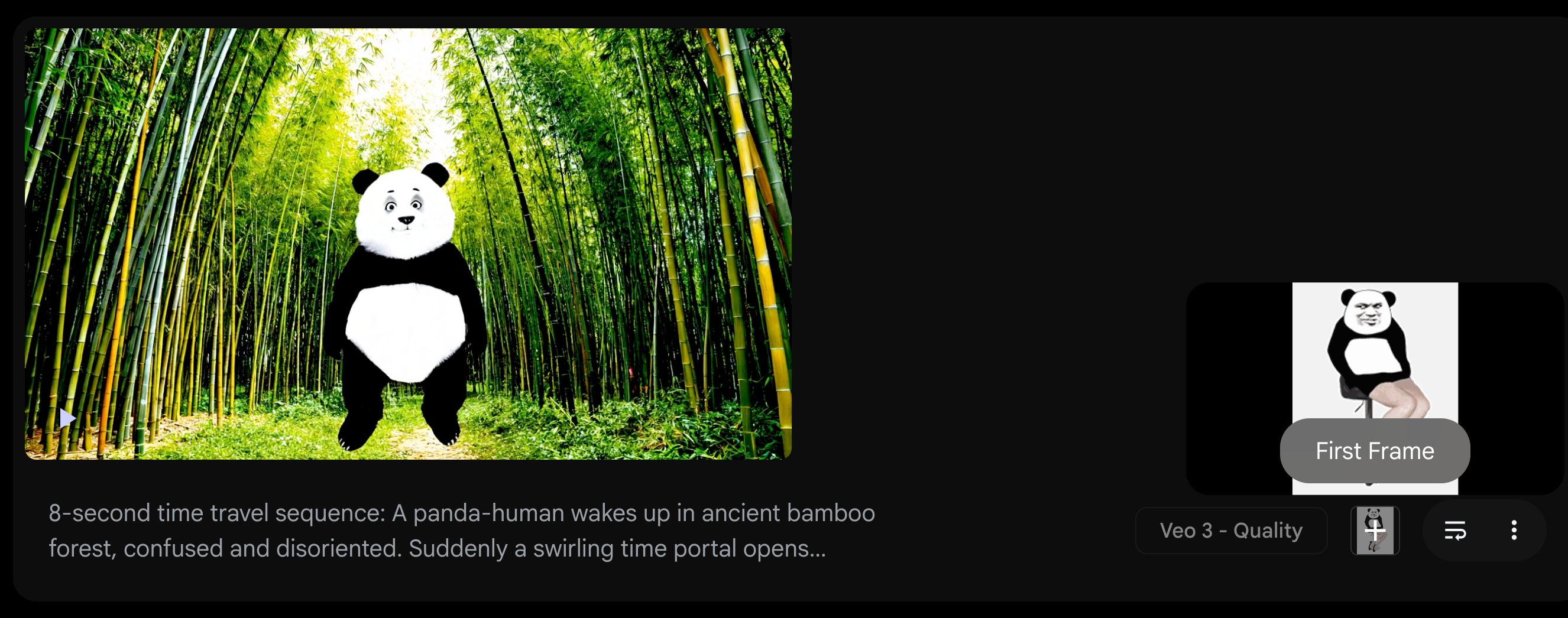 Flow 支持指定开始和结束画面的图片,可以让视频生成的画面更符合预期。