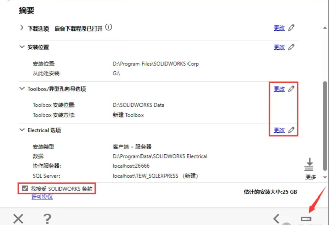 -设置组件位置:用同样方法更改 Toolbox 与 Electrical 安装位置,勾选 “我接受”,点击 “现在安装”,安装过程中弹出提示都点击 “确定”。