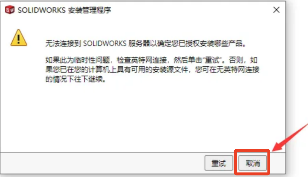 -运行网络文件:双击安装包中的【sw2025_network…】文件,弹出提示点击 “是”,后续提示框点击 “确定”。