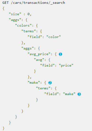 指标聚合主要指常规的集合数学统计类运算,如官方guide的这个例子:找到交易的所有红色的车,然后求它们的平均价格: