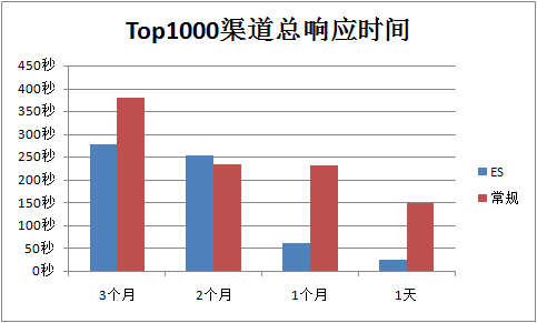 3)从Top1000到Top10,ES的总时间逐渐变差于现有方法。这是因为,空间纬度上,Top10渠道符合条件的数据量级非常大,所以ES的运算效率下降比较厉害。