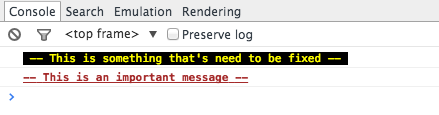 console.log(‘ % c % s % s % s‘, ‘color: yellow; background - color: black;’, ‘–‘, msg, ‘–‘);