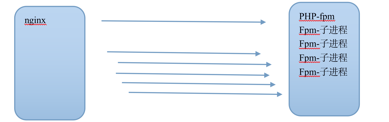 如上图,在很多个nginx来访问fpm时, fpm的进程要是不够用, 会生成子进程.