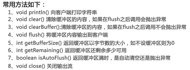 - JspWriter类实例,是向客户端传输内容常见的对象