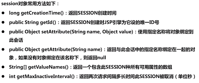 - session对象在第一个JSP页面被装载时自动创建。当一个用户访问服务器时,可能会在多个页面间访问,服务器通过session了解这是同一用户。HttpSession类实例。
