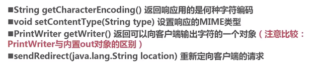 - 包含客户请求的部分信息,JSP中很少使用。HttpServletResponse类的实例。