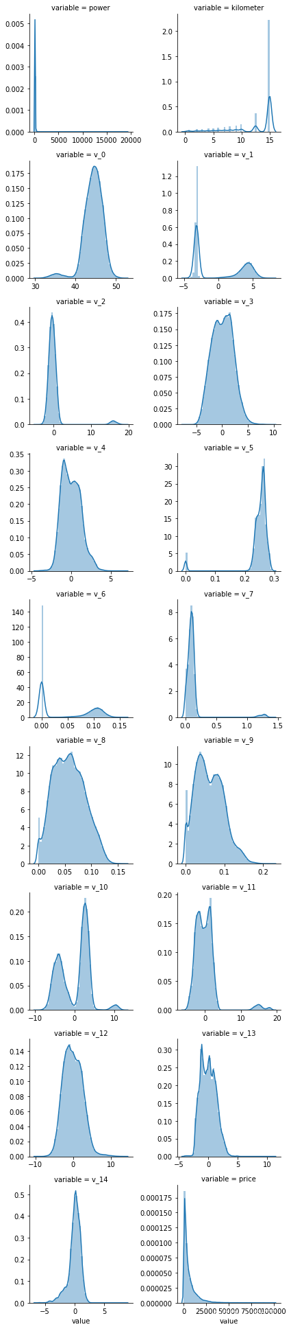 g = sns.FacetGrid(f, col="variable", col_wrap=2, sharex=False, sharey=False, size=5)